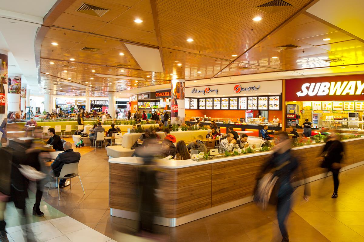 - The second floor is the entertainment floor. A multiplex with 14 halls of the international brand Cinema City International an ice rink and four restaurants with panoramic terraces together with a fast food area.